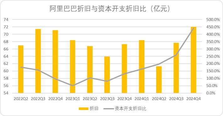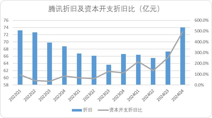 与此同时,虽然腾讯高管在业绩会上花费了大量空间来安抚投资者的资本支出,但从实际表现来看,2024Q4折旧率的提升仍然非常明显。