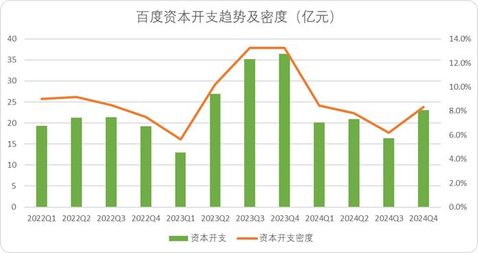 而百度的资本支出意愿也不是很强。自我自2023Q4以来,百度的资本支出密度明显下降。,资本支出的强度基本上取决于收入的低迷,没有积极的资本支出行为。