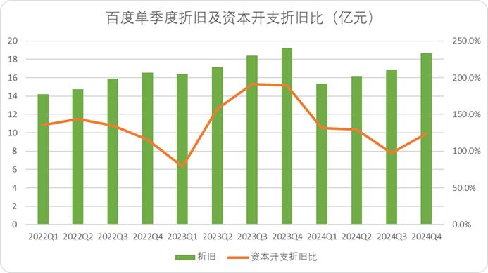 与此同时,百度也没有出现明显的折旧率变化,从资本支出折旧比来看,基本上,在维持性资本支出的时期,似乎感觉不到进入新一轮资本支出周期的潜在趋势。。