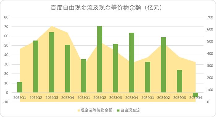 与腾讯阿里相比,百度的资本实力也不够强大,近三年累计自由现金流约为513亿元,第四季度资本支出略微抬头,自由现金流由正转负。。