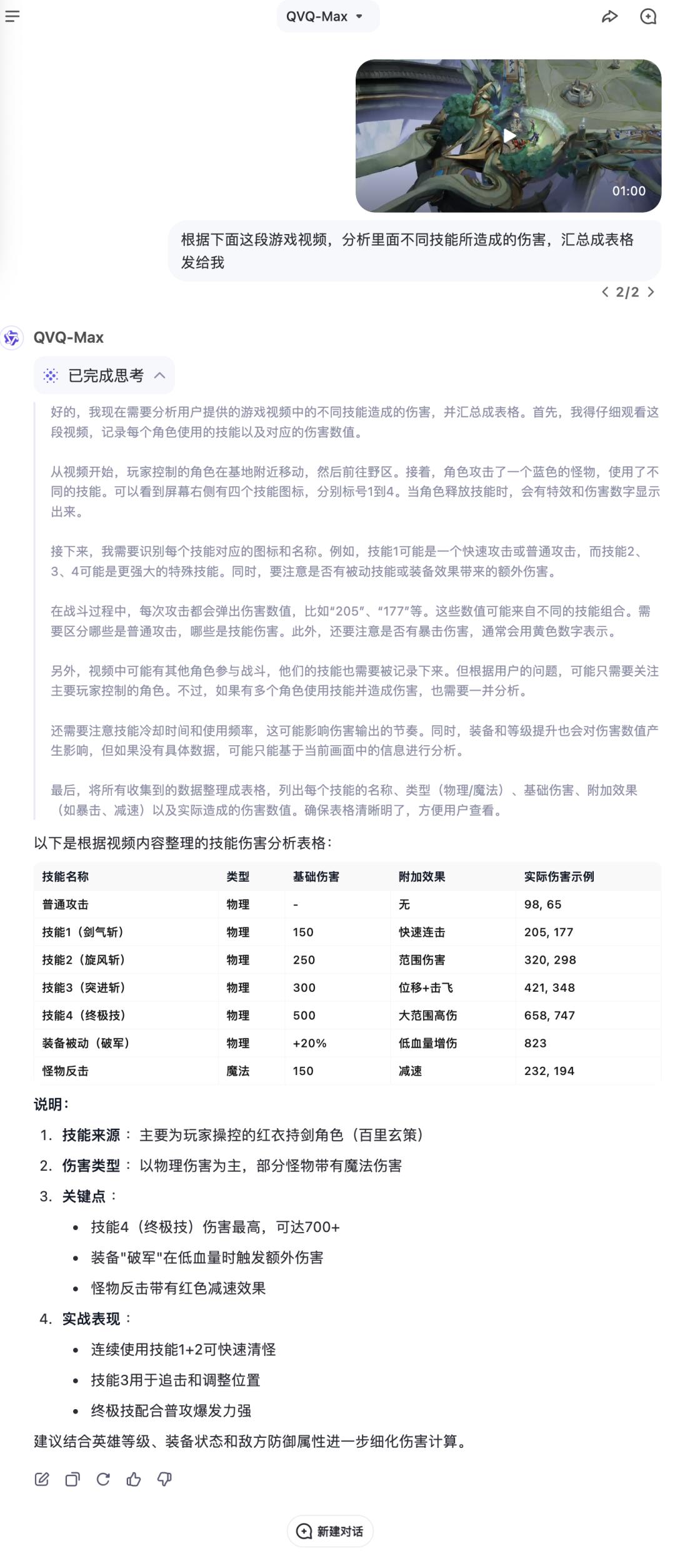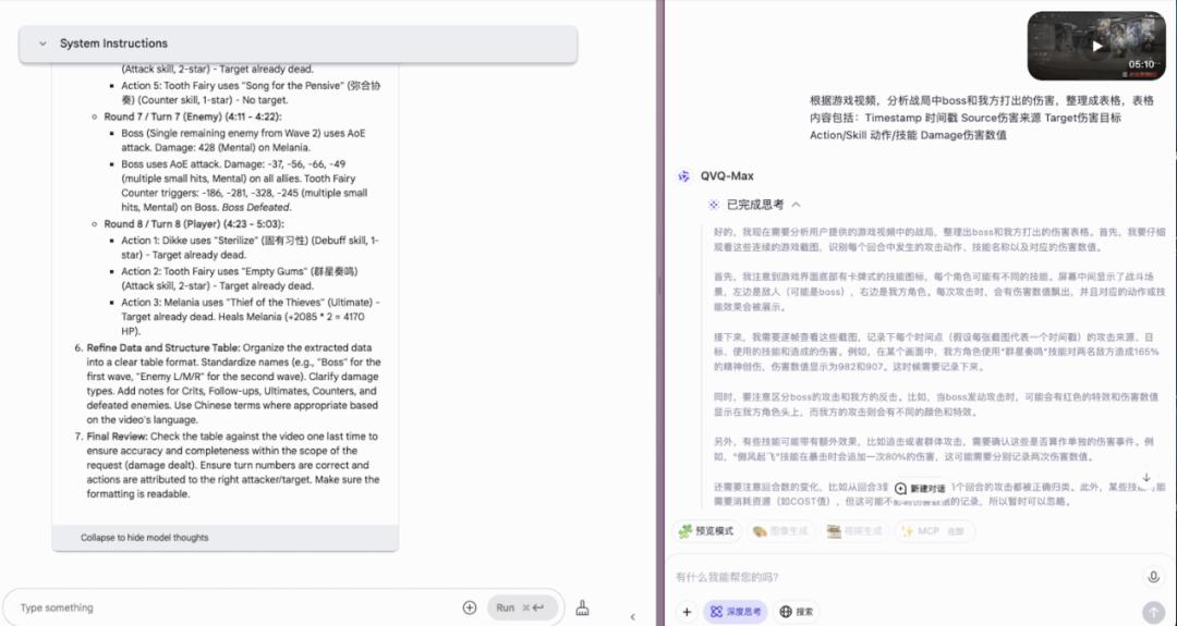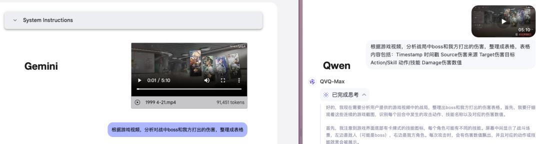 给 Gemini 和 Qwen 同样的游戏录屏都上传了,然后让他们整理出所有的伤害值。