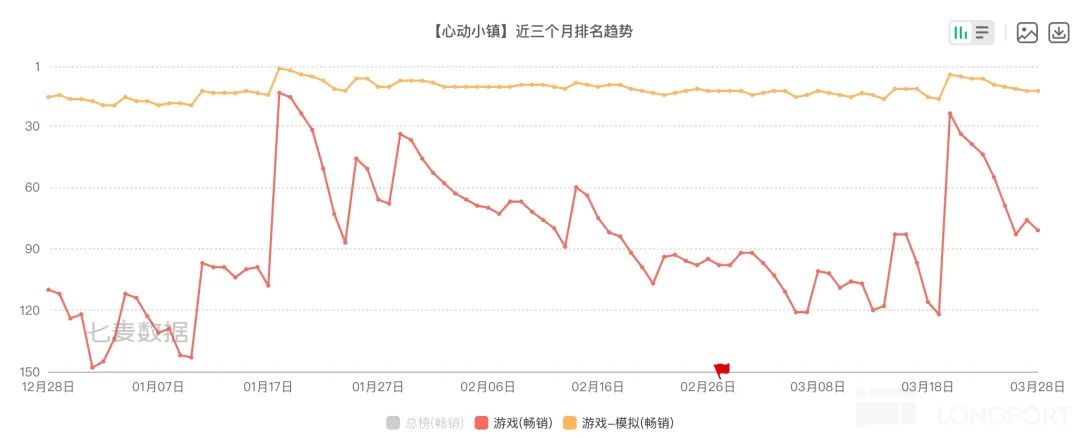 从今年三月到现在,心动小镇 iOS 排名波动,海豚君觉得暂时不用太担心。走吧。 DAU 游戏非常需要运营反复获得客户拉新,后续运营活动跟上,人气也会回升。