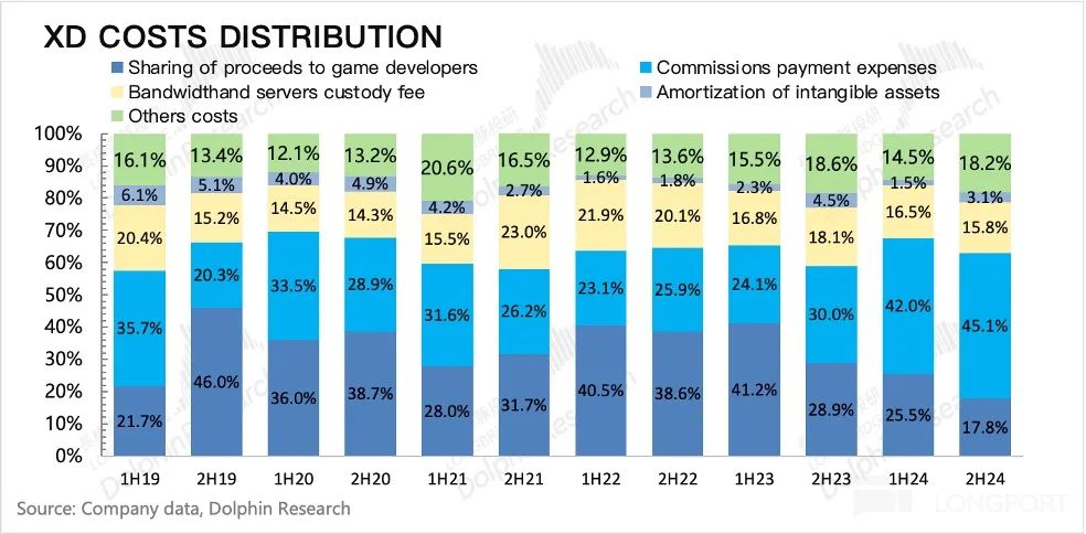 自主研发游戏比例的增加继续导致开发商分成成本的降低。但由于麦芬等几款游戏的海外推出,渠道分成同比明显增加(海外还是要靠的。 Google Play 等待巨头进行分配),但是一增一减,整体游戏毛利率仍然在改善趋势。