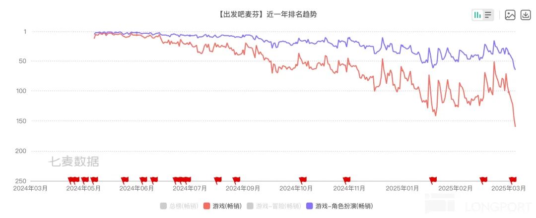 但大 DAU 游戏的一个好处是,长期来看,流水会相对稳定(随着季节的起伏而起伏),尤其是当《心跳小镇》本身商业化不高的时候。这比刷数值氪金的游戏(比如《出发吧麦芬》也属于这一类),生命周期更长。