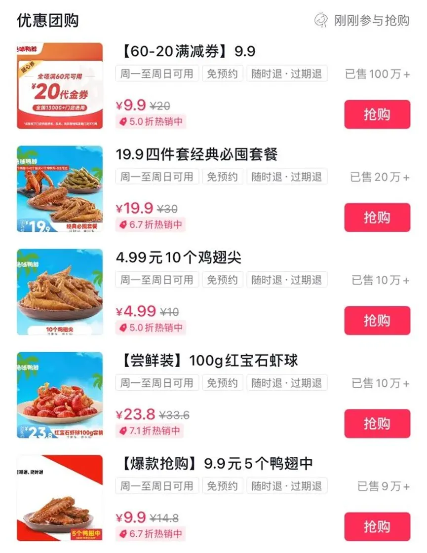 早在2022年,Tiktok本土生活业务就处于起步阶段。为了快速争夺市场份额,Tiktok举起低价武器,发放了大量补贴,“1元四人餐”“9.9元下午茶”“4.5折优惠”,迅速打开市场。