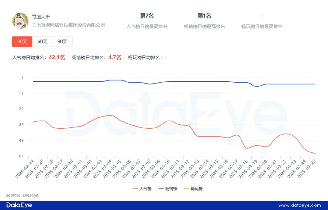 但《寻道大千》多年来积累了庞大的用户群,也能保证产品能够在畅销榜上持续活跃,但很难回到TOP3阵营。