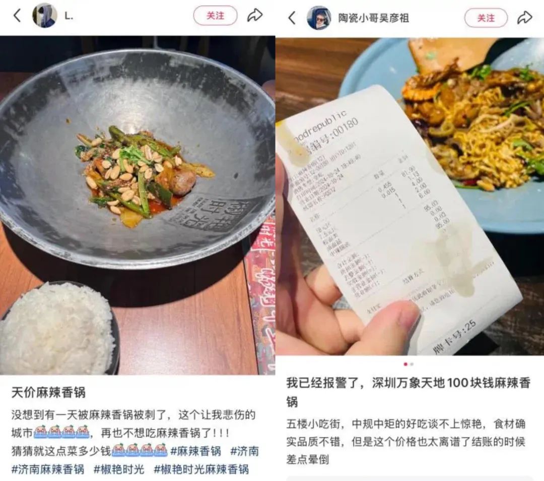 很多网友的吐槽大多集中在北方、广州、深圳,但被称为烟火味十足的辣都长沙,曾经有人曝光过遭受“高价麻辣香锅”的背刺——七八个人吃了近500元的串香,四个方便面100元,甚至几百个金针菇。