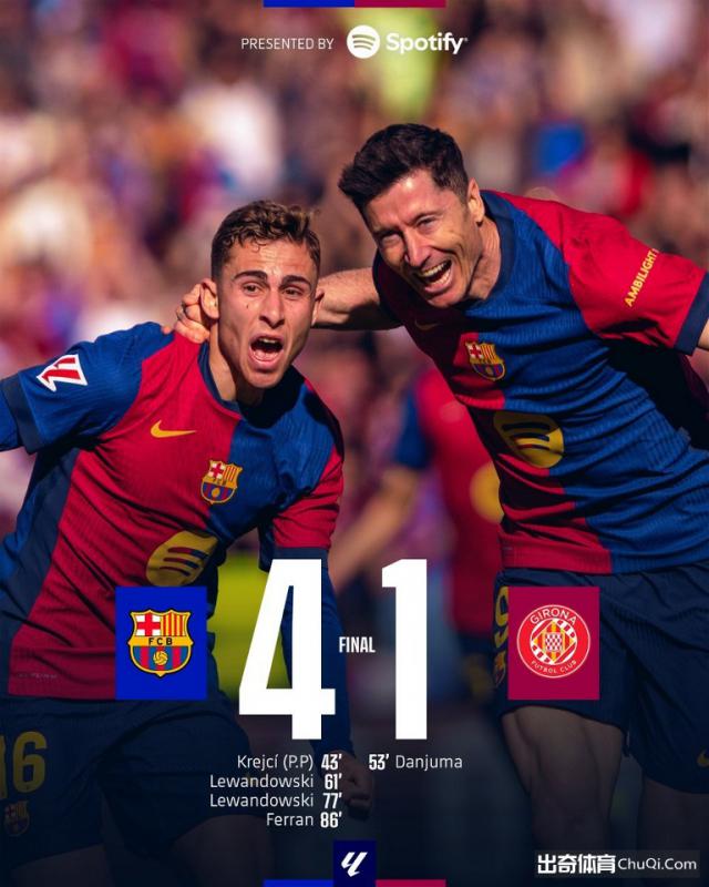 西甲-巴萨4-1连杀赫罗纳&3分领先,莱万双响亚马尔造乌龙。