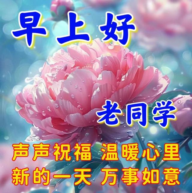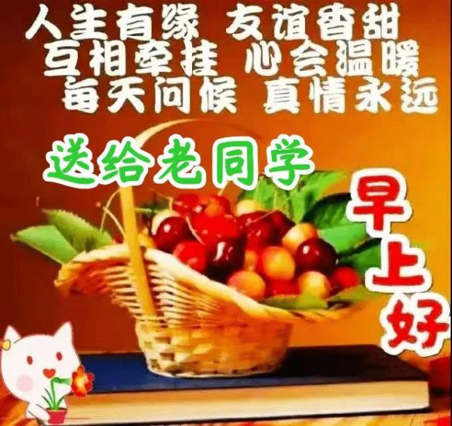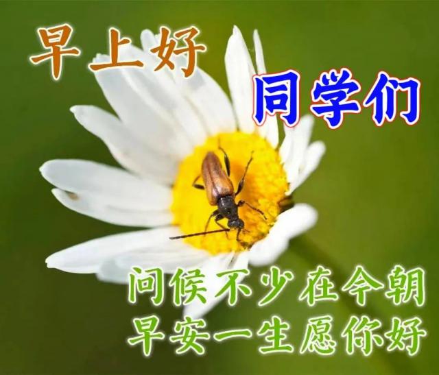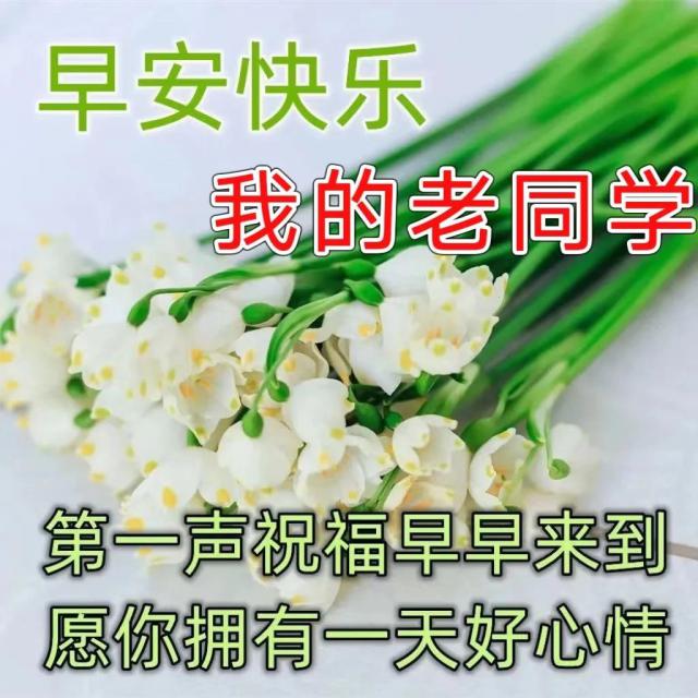 一份祝福总是在晨光中到来。一份快乐总是像晨光一样绽放。一份关注,永远陪伴你每天的精彩。一份美好的工作,永远祝你新的大胆。愿我的祝福让你每天都开心,幸福永远在那里。老同学,早上好!
