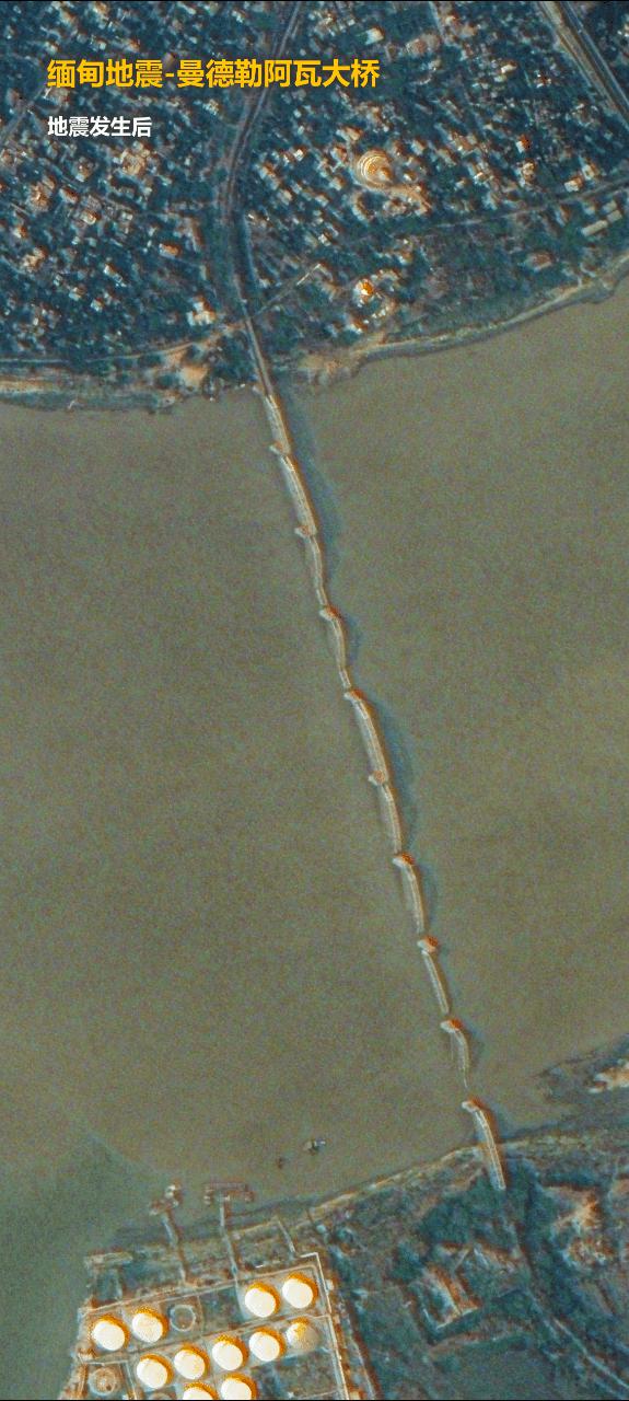 吉林一号宣布缅甸地震前后卫星影像变化