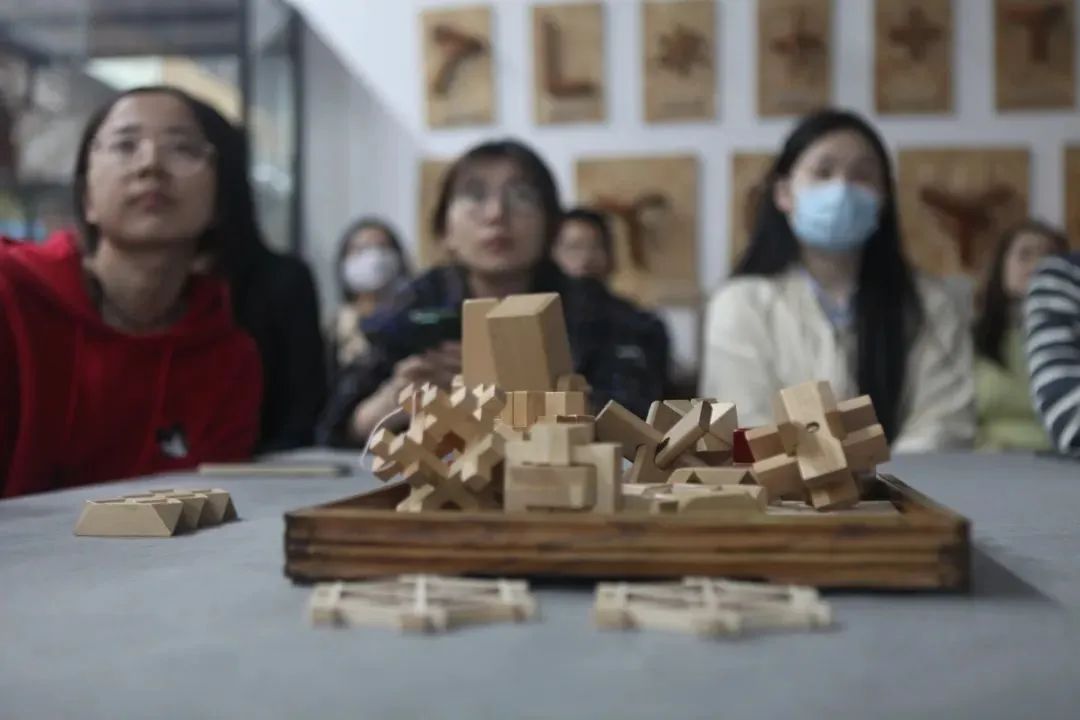 据了解,周文祥不仅是一位技艺高超的非物质文化遗产爱好者,也是一位社会美育老师。他在上海市民夜校当了两年榫卯课程的老师。当他谈到这项教学工作时,他充满了自豪:“社会美育为继承非物质文化遗产提供了广阔的平台。每个学生对榫卯的好奇和探索,让我看到了传统文化传承的希望。”