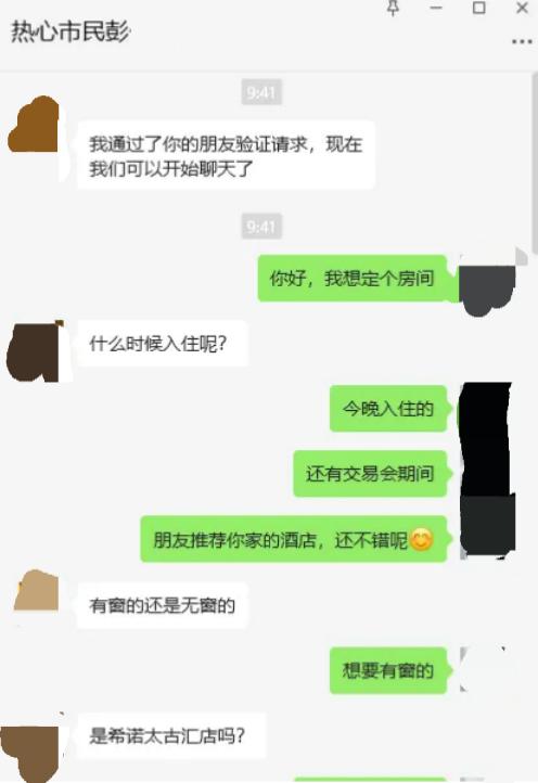 另外一位“顾客”彭某,不但在电话里对“订房”一事大包大揽,还在加微信后问一句“希诺太古汇店?”