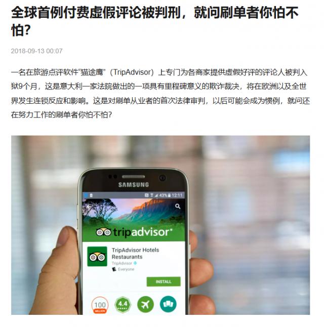2018 年,tripadvisor 一名虚假评价者被判入狱服刑。