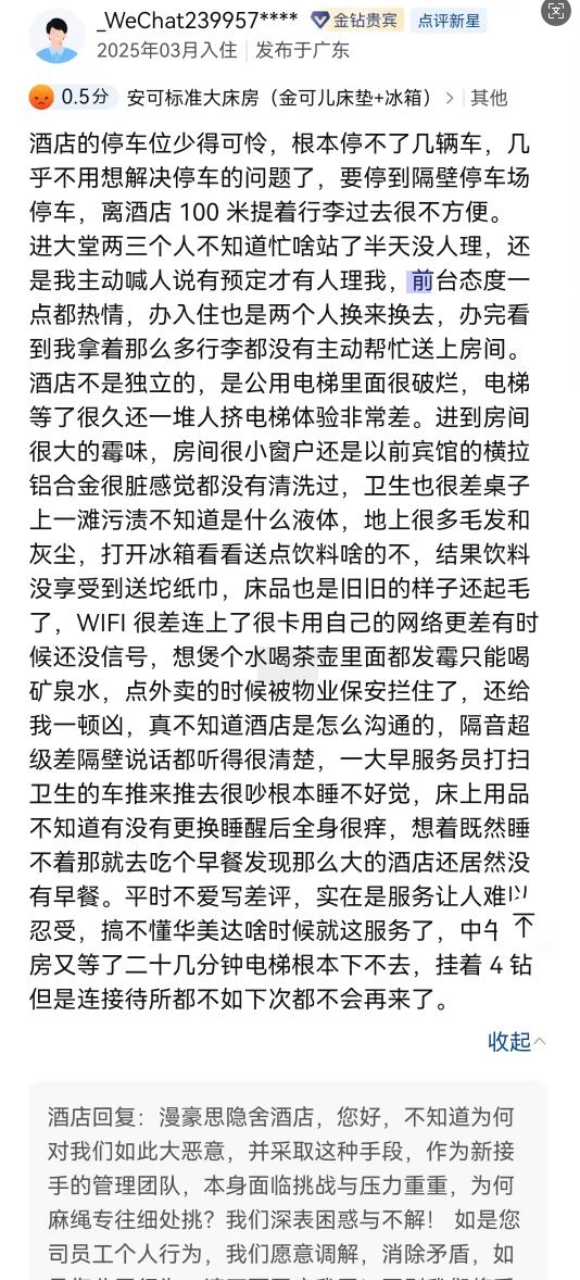 第三,新管理团队接手后,即使有差评,酒店也有褒贬不一的客观差评。我从未见过如此极端的差评。 0.5 分小短文。