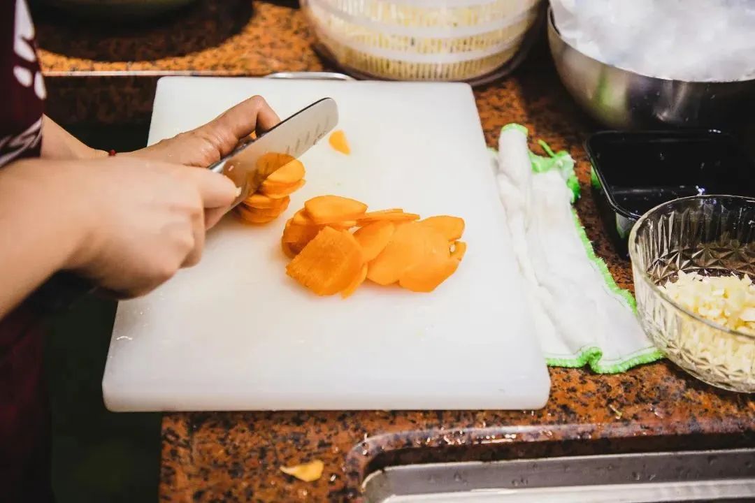 一些研究人员分别在聚丙烯砧板和聚乙烯砧板上切胡萝卜,评估使用这两种塑料砧板时,每个人的微塑料总接触量。
