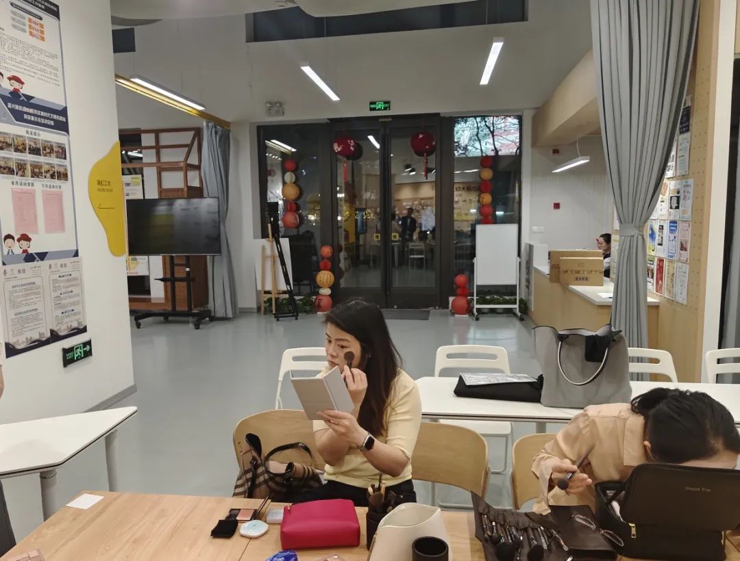 “我原本是一个化妆‘新手’。在老师的指导下,我觉得我的化妆技术进步很大。”学生秦珍妮说,经过课程的学习,我觉得整个人都很自信。以前对化妆品了解不多,现在了解了之后买了一些适合自己的,可以算是促进了消费。