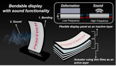 据 IT 世家了解,POSTECH 该研究小组使用了一种特殊的超薄压电高聚物致动器来制造 OLED 发声设备。如果这样的致动器被集成到软性 OLED 在面板中,它可以通过电驱动实现形状的多样化变化,不仅可以形成凹形曲线,还可以表现出凸形,S 形、反 S 各种复杂的形状,如形状和波浪形状,这些变化几乎是动态的,就像显示屏在移动一样。
