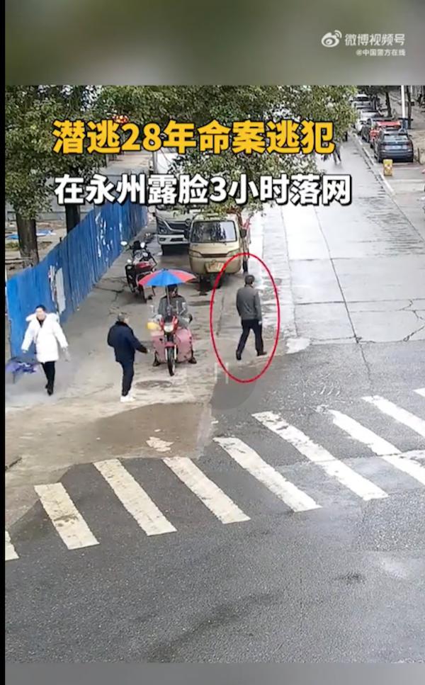 最近,湖南永州,一名潜逃者 28 年命案逃犯只露脸 3 一个小时后,被警察锁定并逮捕。