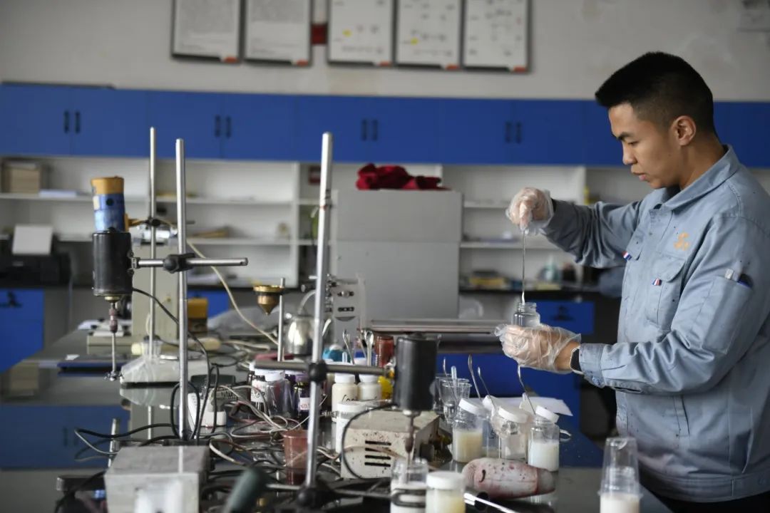 “在这里做配方就像在实验室做实验一样。用滴管等仪器准确匹配油墨比例,不能超过0.01克。”杨光表示,2014年,由于油墨生产起步较晚,企业面临被市场淘汰的风险。当时公司招聘各高校相关专业人才开发新产品。经过日复一日的实验,公司开发的水性油墨以其独特的优势处于国内领先水平。