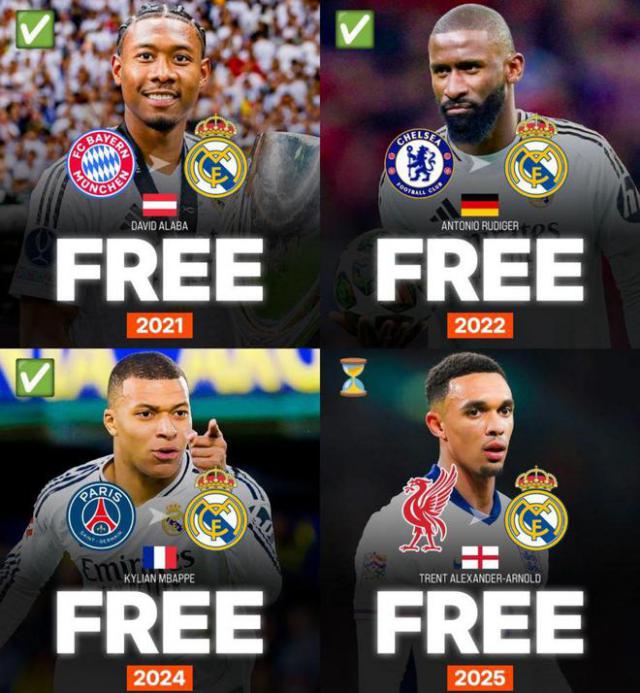 但是随着经验的丰富,佛爷开始了另外一条路,那就是免费签下自由球员,节省转会费用。 2021 从2008年开始,佛爷在免签方面取得了巨大的成就。4 几年前,皇马先从拜仁签下了被中国球迷戏称为刘星的阿拉巴。
