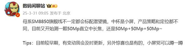 【CNMO 科技消息】3 月 31 日本,有数码博主爆料说,小米 16 潜望镜不一定是系列的标配。中杯是小屏幕,产品策略和定位不同。目前,一个产品已经开始测量。 50Mp 直立中长焦,规格还是直立中长焦? 50Mp 50Mp 50Mp。