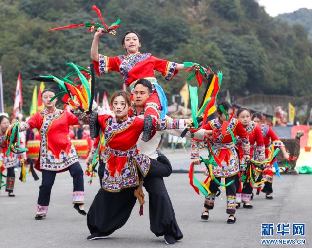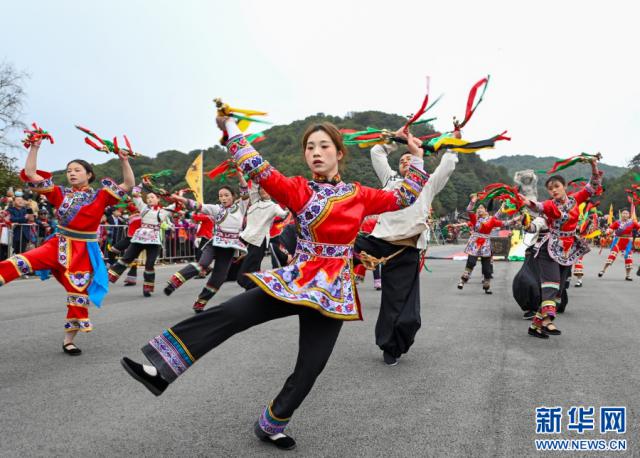 △ 3 月 28 日本,贵州省毕节市百里杜鹃管理区祭花神活动“铃铛舞”表演。新华网发(李华摄)