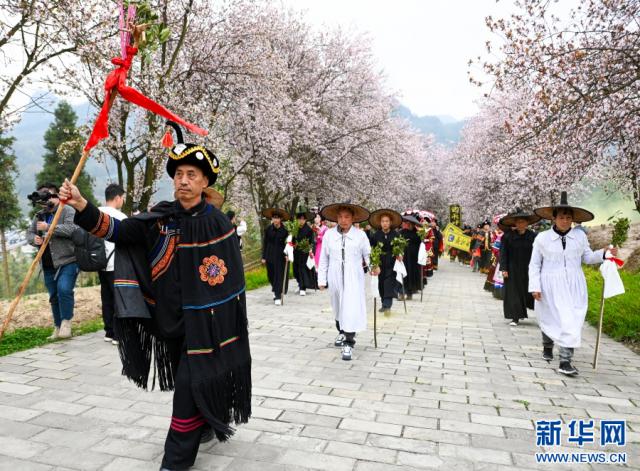 △ 3 月 28 日本,贵州省毕节市百里杜鹃管理区金坡景区举办祭花活动。新华网(李华摄)