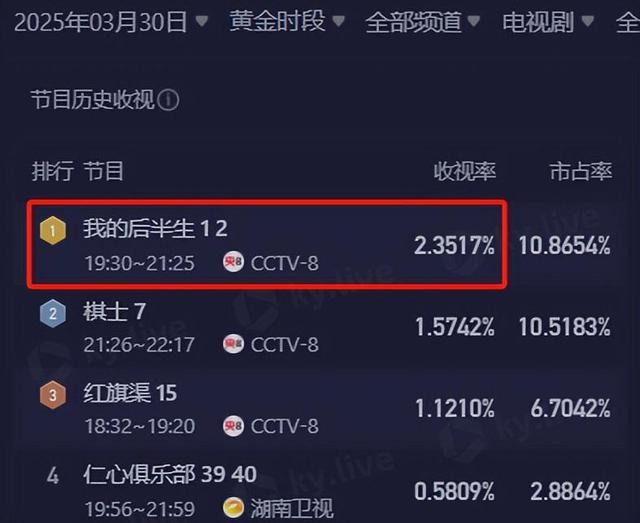 据资料显示,电视剧《我的后半生》已经上线两集,获胜。 2 收视率结果,市场份额接近 11%,一开始就有全网热播的势头。