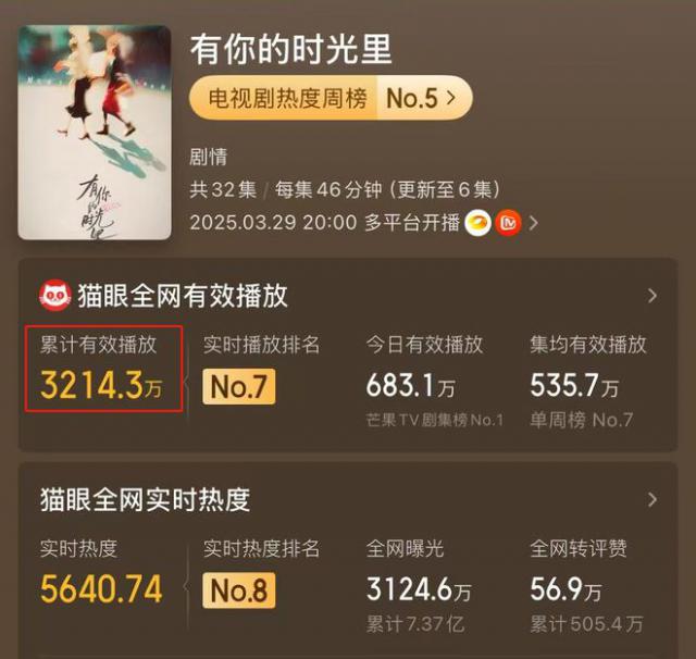 《有你的时光》由童瑶、周依然领衔,开始爆发,上线两天,累计有效播放量破碎。 3000 万,剧情越看越上头。