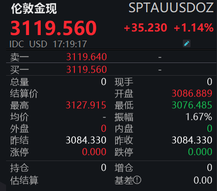 三月三十一日,伦敦金现盘上涨超过3100美元/盎司价格。截至记者发稿时,盘中最高触及3127.915美元/盎司,更新历史新高。