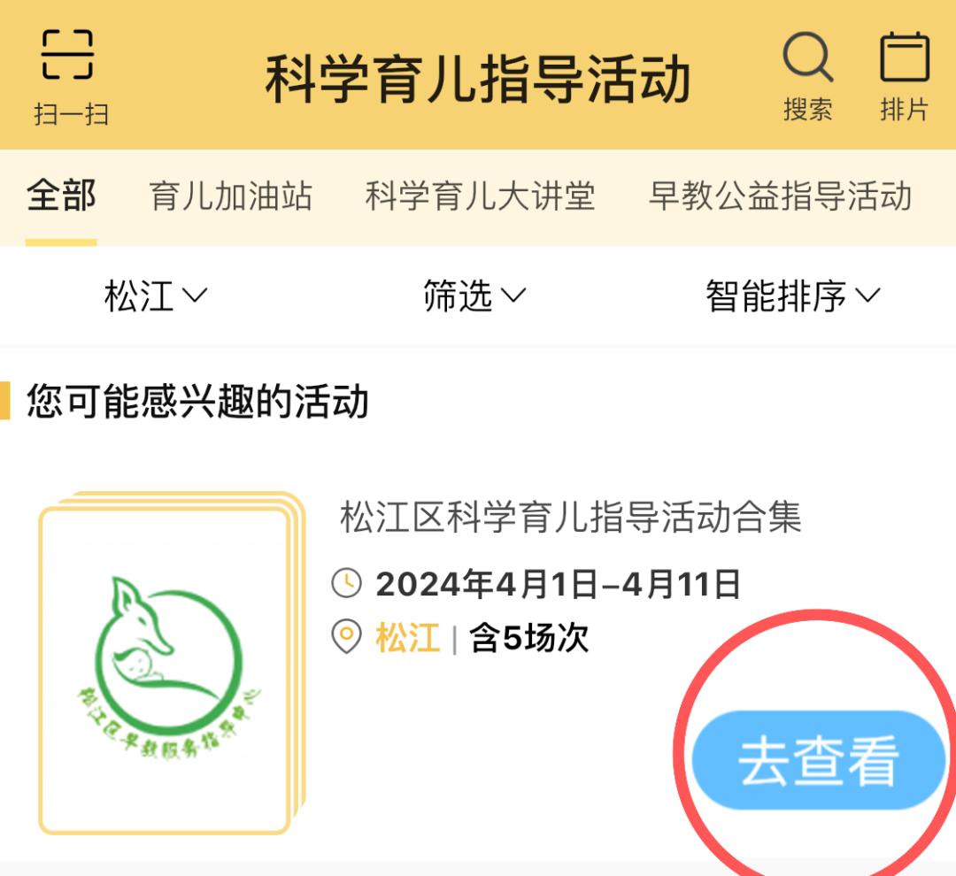 点击“查看”,即可进入松江区科学育儿指导活动合集。