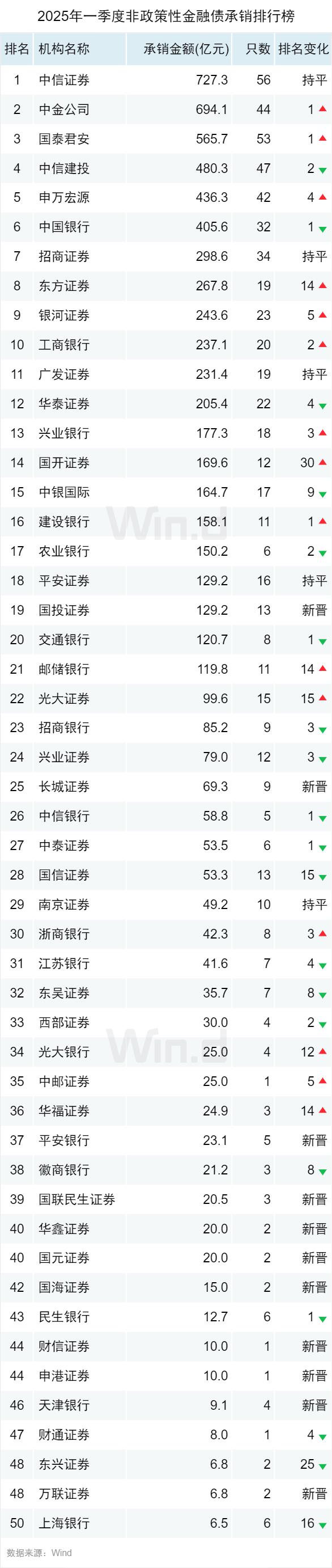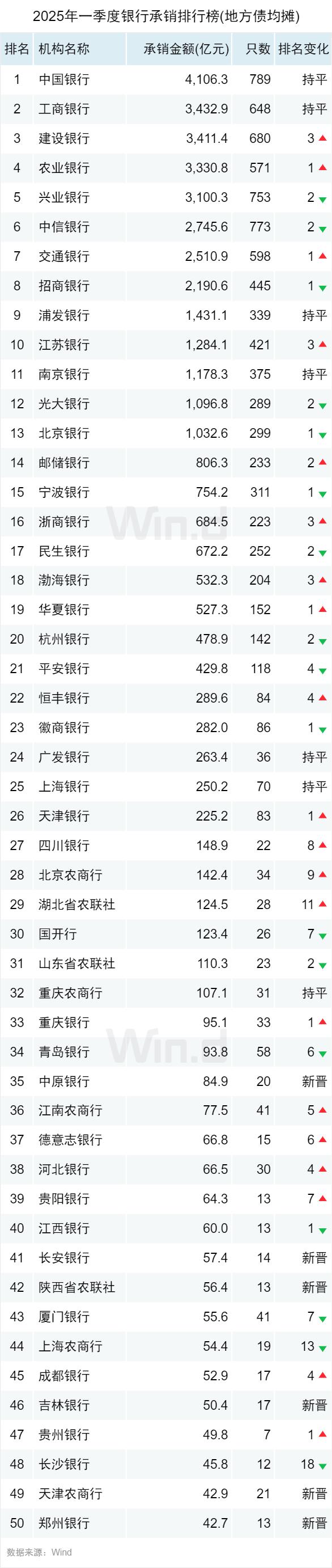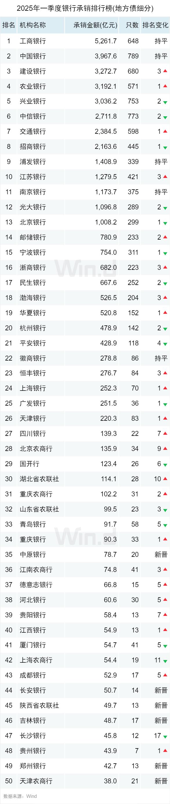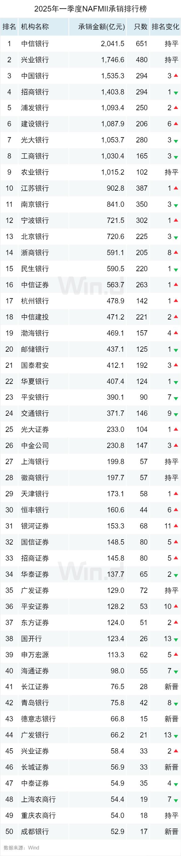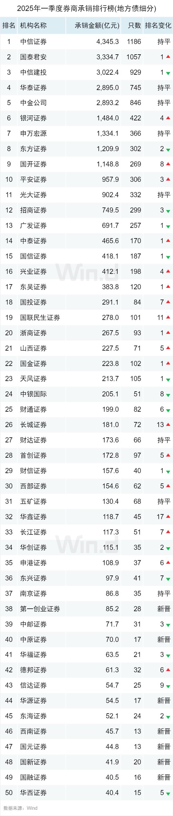 就债券承销而言 2025 每年第一季度各机构的表现如何,万得第一时间为您隆重揭幕。 2025 中国内地市场债券承销年度第一季度排名。