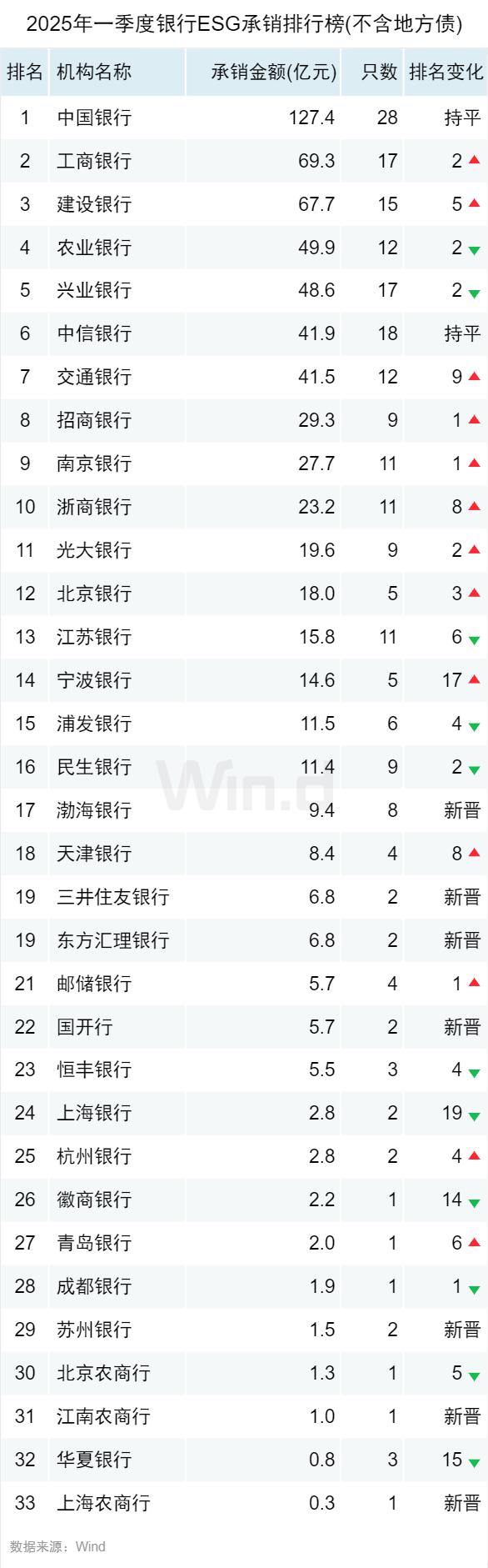 银行包销 ESG 在债券方面,中国银行排名第一,包销 127.4 1亿元,工商银行、建设银行排名第二、第三,包销金额分别为 69.3 亿元和 67.7 亿元。