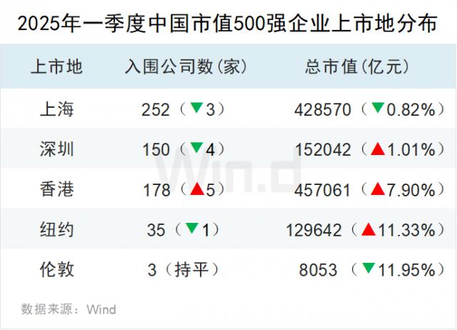 2025 年度入选市值 500 就上海上市地而言,强企业 252 家降低 3 家,深圳 150 家降低 4 家,香港 178 家增加 5 家,纽约 35 家降低 1 家,伦敦 3 家持平。2025 今年以来,由于市场情绪的提高,中概股和港股的总市值都有了很大的增长。其中,香港总市值增长 纽约总市值增长7.90% 11.33%。