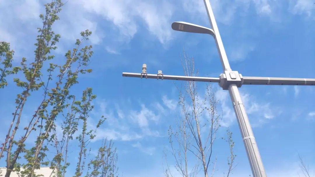 设置在雄安新区街道智能灯杆上的微型智能气象观测设备 拍摄:郭义涛