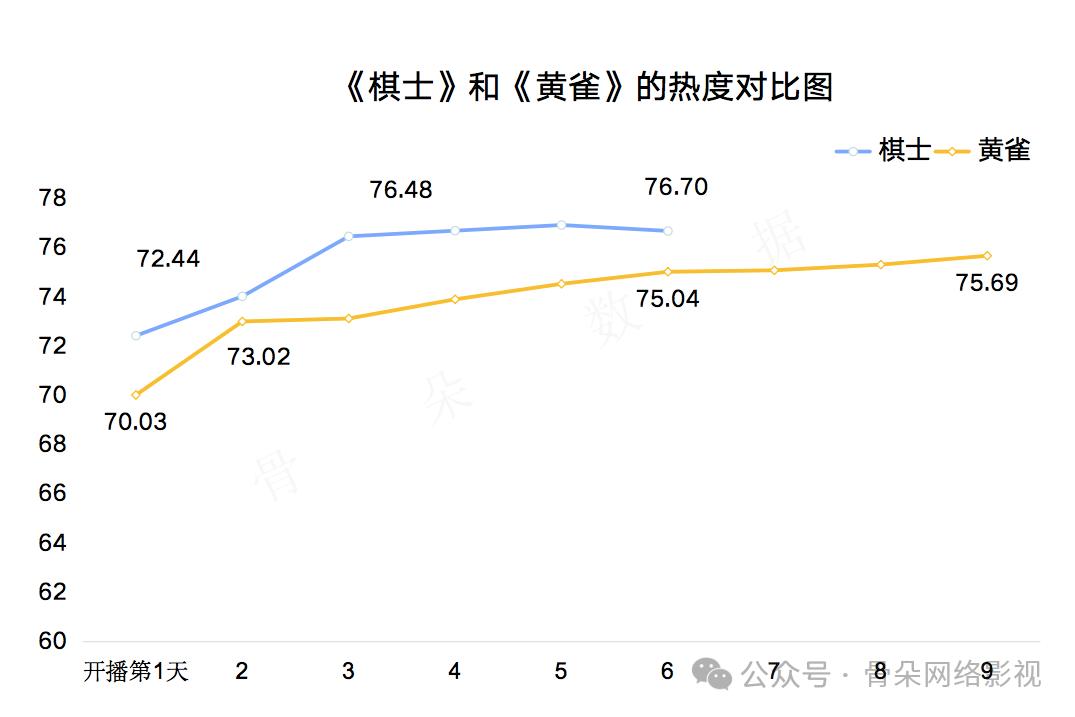 比如郭京飞的表演风格一直都有一种市场幽默,但是《黄雀》中对生活的描述会在一定程度上影响观众的感受。与《棋士》播出前5天的数据相比,《黄雀》起步热度较低,涨幅相对较小,目前收到的评价褒贬不一。