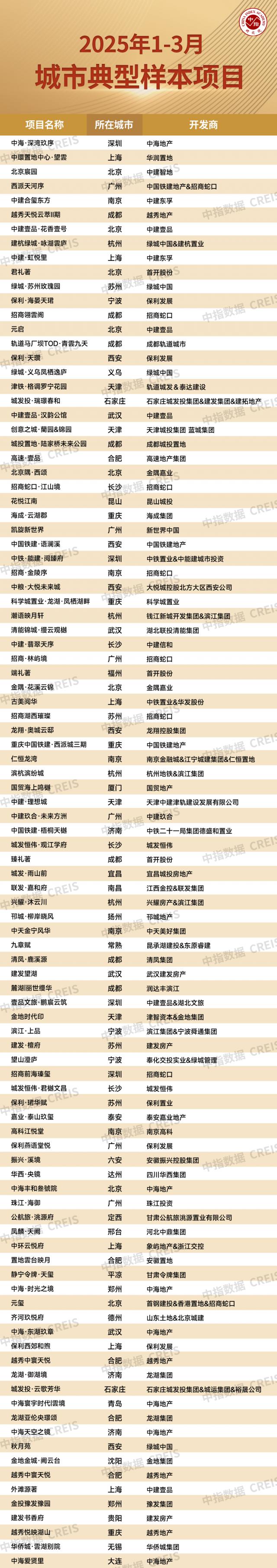 从" 2025 年 1-3 根据月城典型样本项目“,当选项目多为热销楼盘或标杆项目,开发商主要是国家品牌房地产企业和地方知名企业。从长远来看,提高住宅质量和服务质量是房地产企业实现高质量发展的核心竞争优势。对此,房地产企业需要不断深化产品研发能力,深化服务运营体系,准确把握不同客户的个性化需求,打造具有行业示范功能的优秀项目,促进行业优质发展。