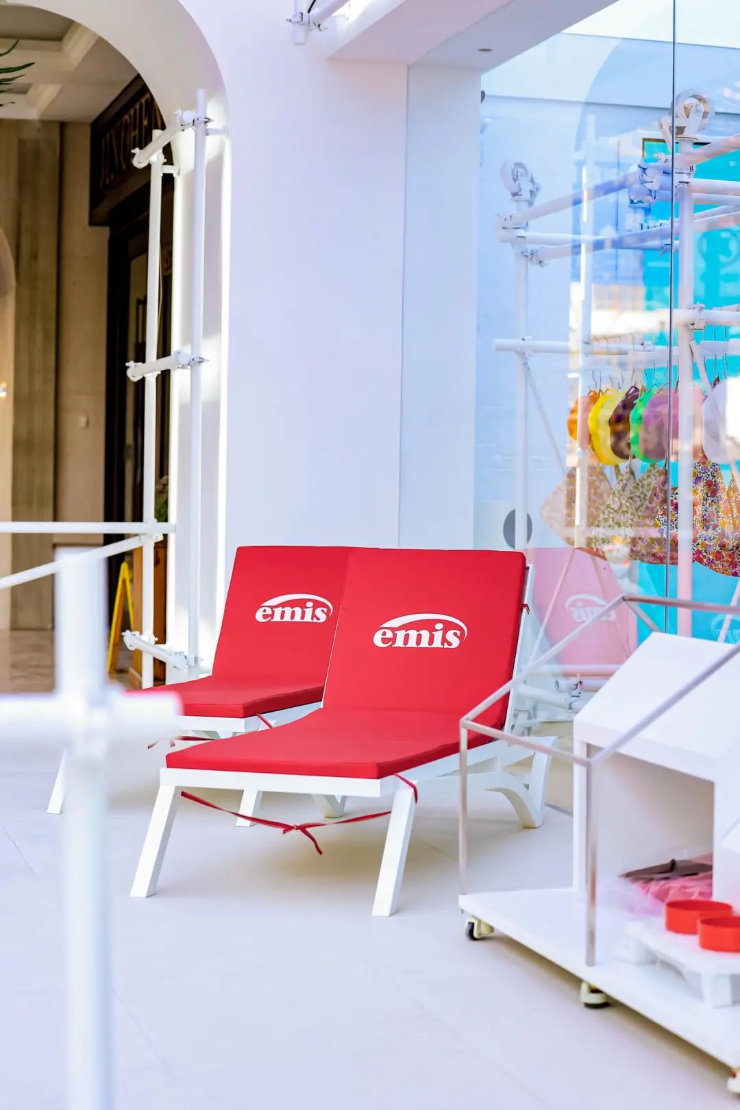 emis作为一家在时尚领域影响很大的公司,对上海淮海商业(集团)有限公司和淮海路的发展模式十分认同。走进emis首店,店内潮装展示别出心裁。入口处,极具视觉冲击力的展示架上摆放着时令热门系列,色彩搭配引人注目,让人瞬间体会到品牌的潮流态度。店内根据服装风格划分不同区域,休息区域的宽松毛衣,运动区域的功能风服装等有序展示,方便顾客选择。墙上装饰着品牌代表图案和艺术涂鸦,营造出浓厚的潮流氛围。配饰区域精致的颈链,时尚的帽子等与服装相辅相成,为客户提供一站式组合选择。