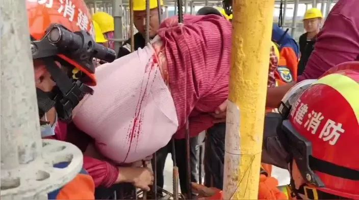 一名女工人被钢筋贯穿腰部