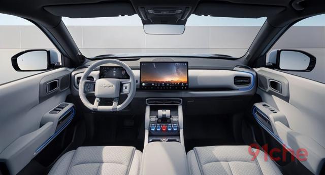 钛 3 内饰设计同样充满现代感。飞翼仪表台,C 形状星际灯和“战车档” 晶体按钮“营造出极具科幻力量的驾驶氛围。AI 支持语音交互和场景模式一键切换的智能驾驶舱和多功能灵动岛,15.6 12英寸中控屏 英尺 HUD 与帝瓦雷音响相结合,结合人体工程学座椅和冷热冰箱,给用户带来身临其境的驾驶体验。
