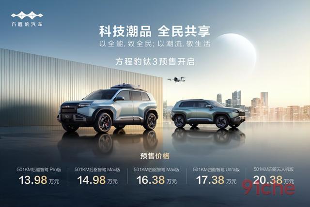 当比亚迪集团方程豹汽车总经理熊甜波现场公布时,首先是它的价格。 13.98 预购起步价1万元,现场欢呼给予最直观的肯定。即使是最高配置,灵鸢智能车载无人机系统,也就是 20 万左右。