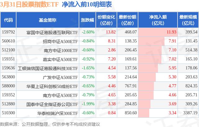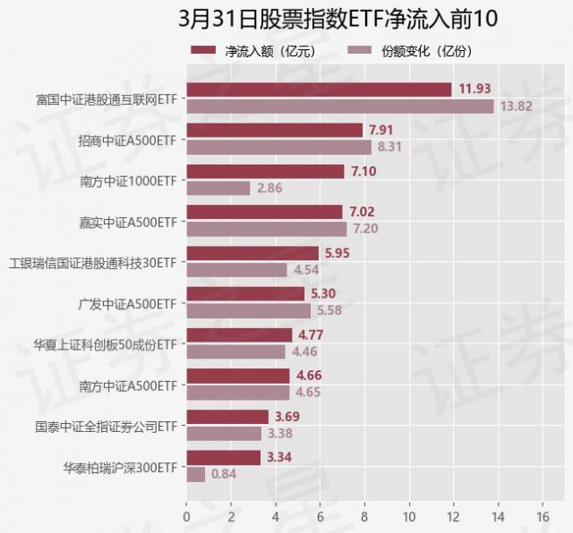 三月三十一日,股指ETF净流入101.08亿元
