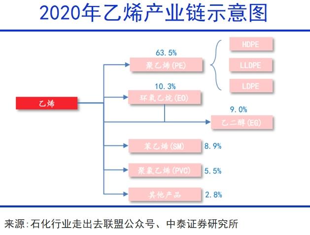 乙烯化合物作为石化行业的“大主人”,决定了下游石化产品的75%以上。