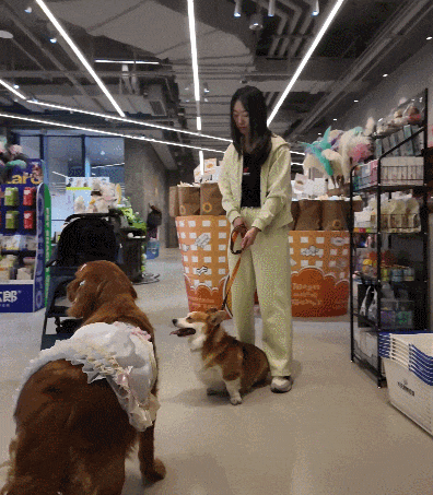 在老大宠物百货商店里,宠物可以落地,享受室内购物、撒欢的乐趣。