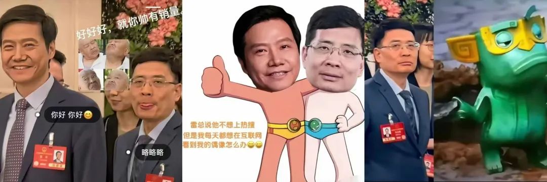 照片迅速走红后,网友们制作了一系列表情包。有人给周云杰P上了《红楼梦》黛玉的帕帕,上面写着“如果我知道雷军来了,我就不会来了”。;一些网民调侃说:“雷总什么时候开始带助手?;甚至有硬核粉丝把现场视频和《海尔兄弟》的动画片段混在一起,让卡通人物围着周云杰大喊“大哥,你笑啊”…