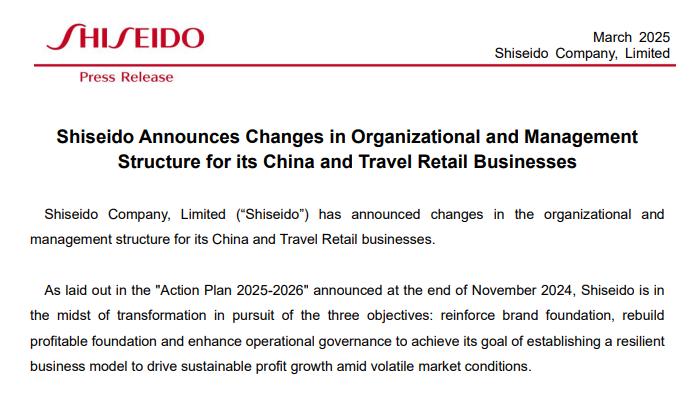 据悉,资生堂在官网发布了《关于改变中国和旅游零售业组织体系和管理机制的通知》,即旅游零售总裁兼首席执行官的变化,透露的关键信号是恢复盈利能力、重组中国市场和旅游零售业务的决心。