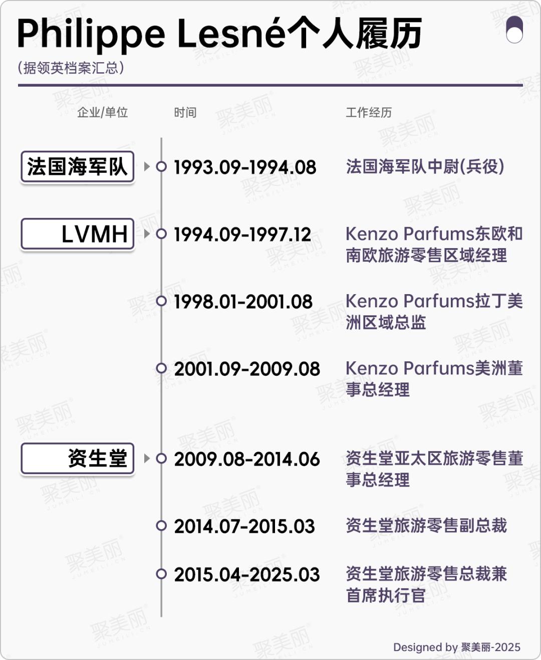 值得注意的是,已经退休的Philippe Lesné在加入公司之前,菲利普·莱斯内是资生堂的殿堂级高管,曾经是法国海军队的中尉,仍然是LVMH负责Kenzo 多个地区的Parfums品牌或旅游零售业务。