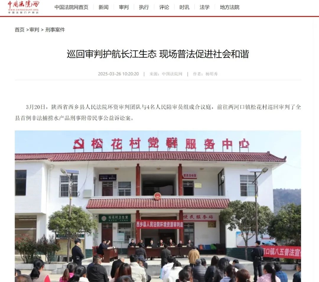 3月20日,陕西省西乡县人民法院环境资源审判团队与4名人民陪审员组成合议庭,前往两河口镇松花村巡回审判了全县首起非法捕捞水产品刑事附带民事公益诉讼。