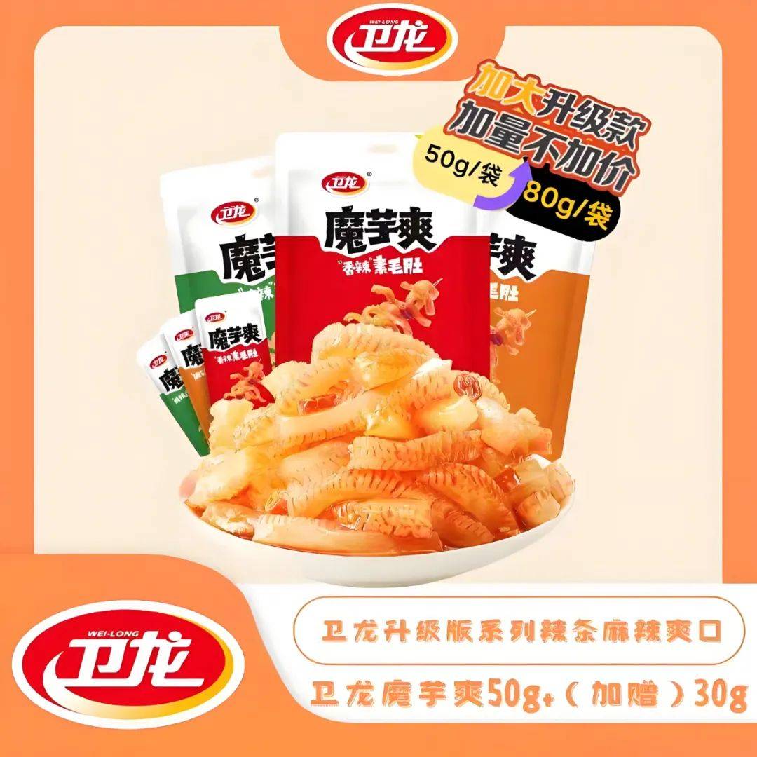 近年来,卫龙先后推出了新产品,如“小女巫”魔芋素毛肚、“小女巫”麻辣烧烤魔芋素板筋、香辣炖菜风格海带、麻酱魔芋爽等。