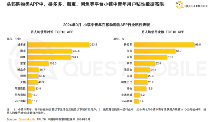 例如,QuestMobile披露的数据显示,2024年9月,它成为“小镇青年”移动购物的首选。当前,小镇青年正经历着“消费升级”的浪潮,近75%的小镇青年顾客愿意为优质商品付出更多,88%的消费者认同品牌对产品质量的重要性。